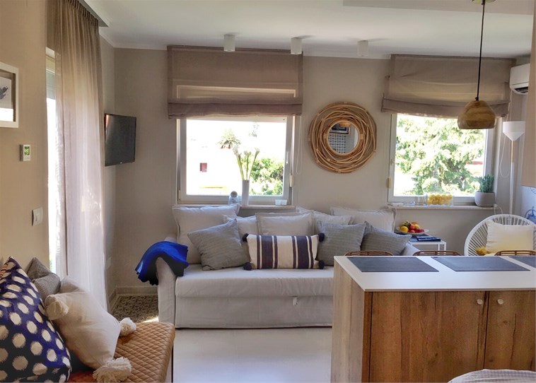 CondividereNikky’s blue dream appartamento è nuovo di zecca, completamente rinnovato e progettato con tanto amore e cura per farti godere la tua vacanza e l'atmosfera locale. Si tratta di un appartamento di 45m2 con una camera da letto, perfetto per 4 persone, a 5 minuti a piedi dalla prima spiaggia di Kadin ea 5 minuti a piedi dal centro della città. E 'completamente attrezzato e climatizzato. Si può godere di una piccola terrazza di 9m2 e una grande terrazza di 24,5 m2, entrambi con vista sul mare e sulla palma. Inoltre, al piano terra c'è uno spazio di archiviazione di 3 m2 per tutto ciò che non si ha nell'appartamento. L'appartamento Nikky’s blue dream si trova al terzo piano di un edificio più piccolo, più vecchio. Tieni presente che non ci sono ascensori, ma le scale sono molto leggere rispetto al clima. Godetevi una piccola terrazza rivolta a ovest con una splendida vista sul mare, e una grande terrazza come un soggiorno, rilassarsi sul divano con vista sul mare o cenare al vino da tavola .. Godetevi gli incredibili tramonti ..