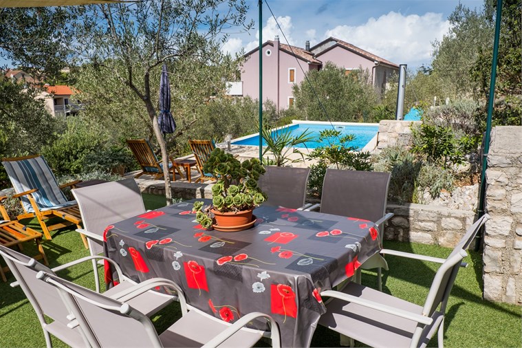 CondividereCasa Rovenska si trova vicino a un piccolo porto di pescatori, Rovenska, che domina con la sua spiaggia di ciottoli e l'atmosfera di pesca. Appartamento Rovenska 1 è per un massimo di 3 persone. Dispone di 2 camere da letto, una matrimoniale e una singola, bagno con doccia, cucina con soggiorno e balcone. C'è anche un ampio giardino dove è possibile utilizzare il barbecue e la piscina all'aperto.